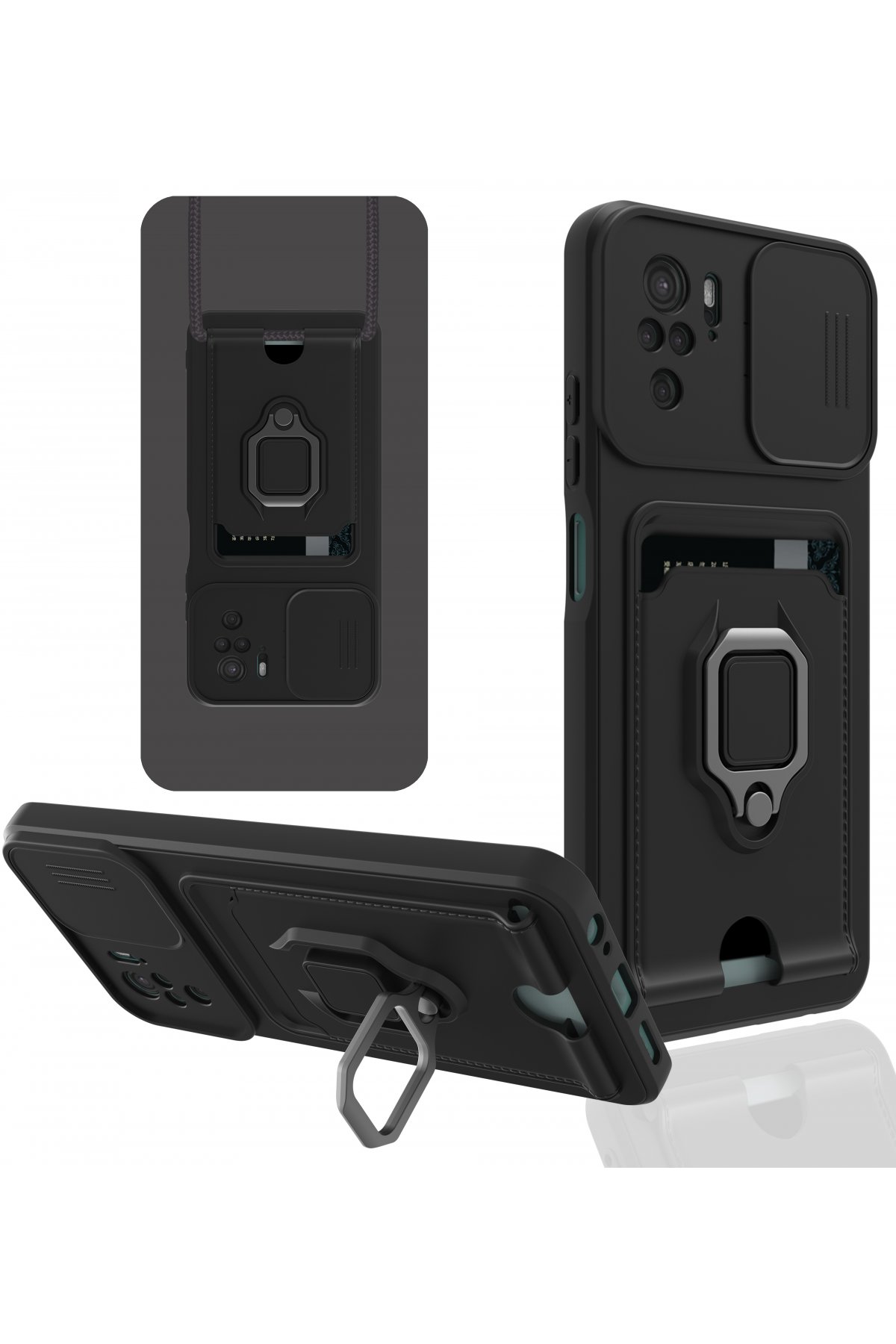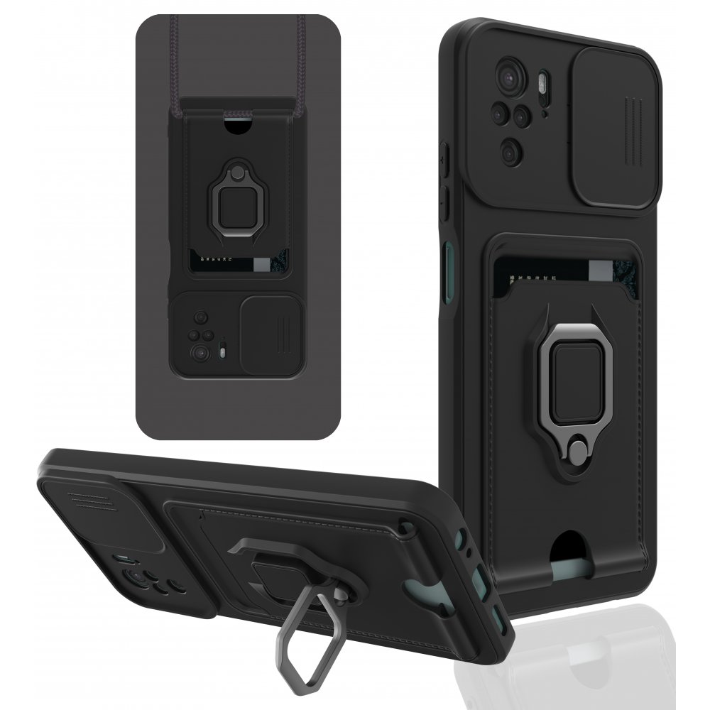 Redmi Note 10 Kılıf Zuma Kartvizitli Yüzüklü Silikon - Siyah